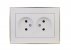 RAIN Розетка двойная б/з керамика белый с бок. вст. золото (10шт/120шт)