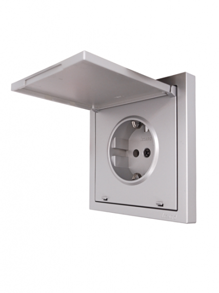 ZIMA Розетка с/з с крышкой ПБТ серый матовый безвинтовой зажим/клемма (10шт/120шт)
