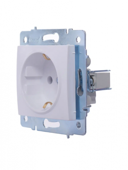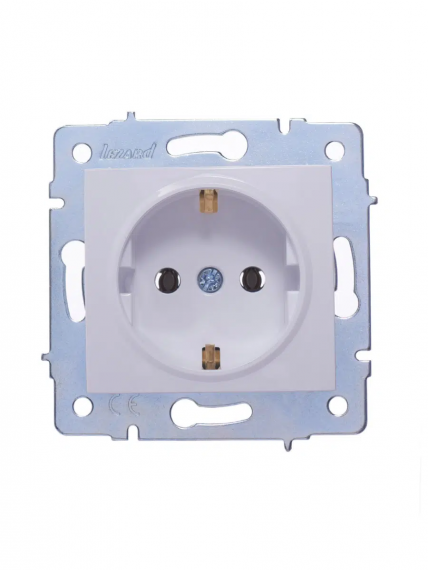 Розетка с/з (механизм) без рамки белый KARINA-LEZARD. Корпус выполнен из АВS-пластика, электроизолирующий корпус розеток выполнен из ПБТ-Полибутилентерефталат не горючий пластик, выдерживающий 850°С. Токопроводящие элементы выполнены из MS70 (70% меди,30% цинка). Каркас выполнен из оцинкованной стали, толщиной 1мм. Розетки Lezard выдерживают нагрузку тока до 16А. Винтовое соединение.
