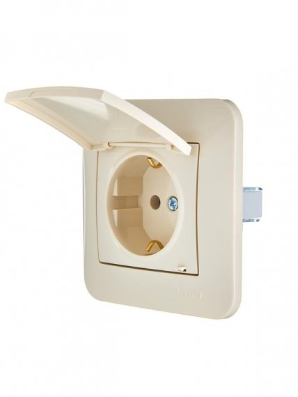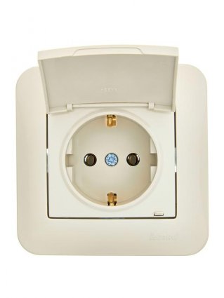 ASTI Розетка с/з с крышкой ПБТ крем (10шт/120шт)