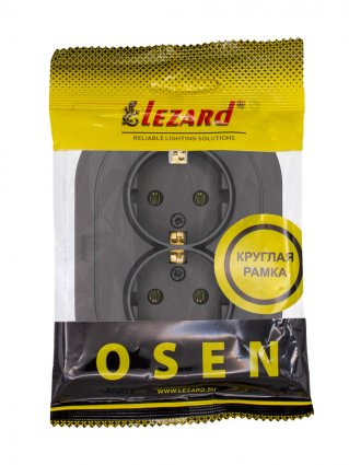 Lezard 744-4200-127B OSEN Розетка двойная с/з ПБТ чёрный бархат круглая