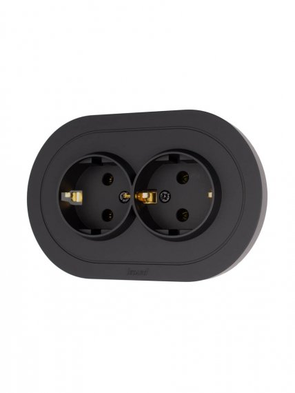 OSEN Розетка двойная с/з ПБТ чёрный бархат круглая (10шт/120шт)