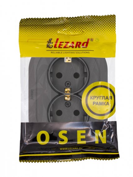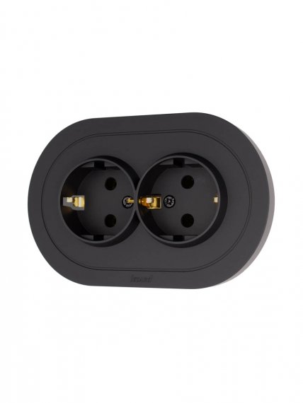 OSEN Розетка двойная с защитой от детей ПБТ чёрный бархат круглая (10шт/120шт)