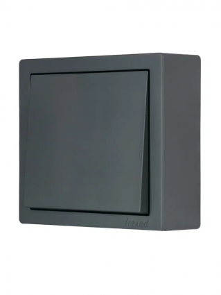Выключатель графит LETO-LEZARD. Корпус выполнен из негорючего поликарбоната (РС). Внутренний механизм выполнены из негорючего поликарбоната, выдерживающий 850°С. Токопроводящие элементы выполнены из MS70 (70% меди,30% цинка).