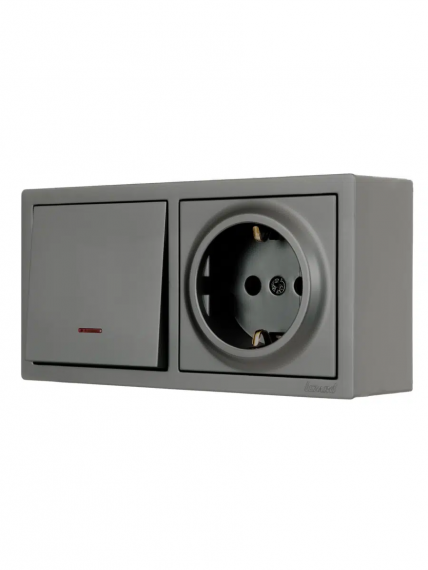Выключатель с подсветкой и розетка с/з, платина горизонталь LETO-LEZARD. Корпус выполнен из негорючего поликарбоната (РС). Внутренний механизм выполнены из негорючего поликарбоната, выдерживающий 850°С. Токопроводящие элементы выполнены из MS70